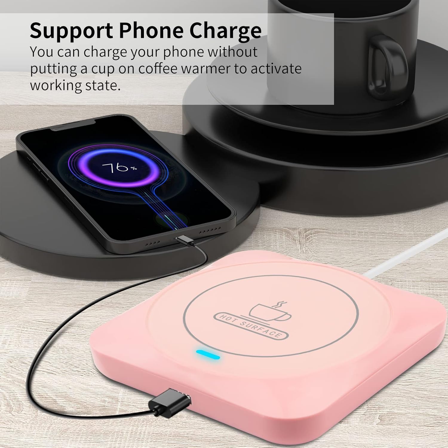- USB WIRED CHARGING FUNCTION: The USB mug warmer can not only warm your drinks, but also can charge your phones, cup warmer is corded only, but the added USB output port can use a charging cable to connect to your mobile phone (Applicable to iPhone cable). Make your life more warm and convenient.